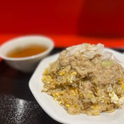 食券購入してから6分後にカウンターに到着して、立ち食いカウンターへ運搬。ラーメンも美味しかったけど、こちらのチャーハン。やばいくらいに美味い。