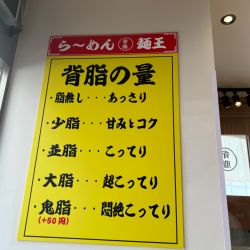 | 備考 | 「東京背脂ら~めん 麺王 渋谷本店」からのリニューアル 「シマダ薬局」「Vicino a Lei」跡地 麺量(麻生製麺) 汁そば 170g 大255g つけ麺 300g 大400g まぜそば 200g 大300g |