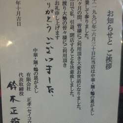 平成二年(1990年)六月三十日に当店は中華・麺・鶴の恩返し開店、営業して参りました。